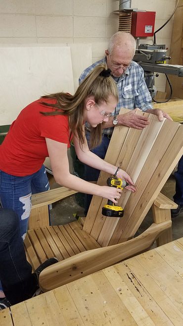 Our Chairs For All Ages program is a multi-week program connecting older adults with high school students to build, design, and paint Adirondack-style chairs. Pairs of chairs are then placed throughout the community to encourage people of all ages to get outside, explore the community, and engage with one another in a relaxing environment.